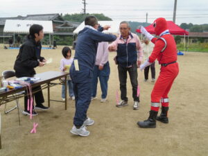 あいにくの曇り空ではありましたが、健康測定や健康体操、6分間ウォーキングなどどなたでも参加できるメニューで、実施しました。